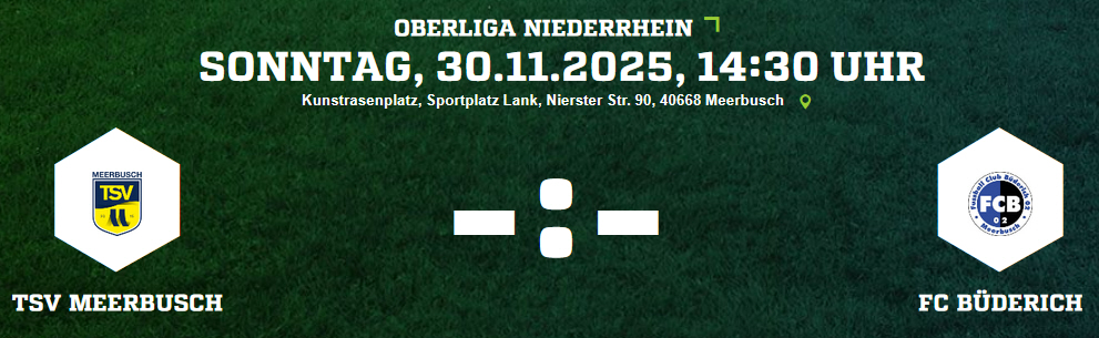 Am 15. Spieltag der Oberliga-Niederrhein traf der TSV Meerbusch auf der heimischen Theodor-Mostertz-Sportanlage auf den Lokalrivalen FC Büderich. Vor dem Spiel schienen die Rollen klar verteilt. Der TSV Meerbusch war als Tabellensiebter gegen den zwar acht Plätze aber nur vier Punkte dahinter liegenden FC Büderich leichter Favorit.