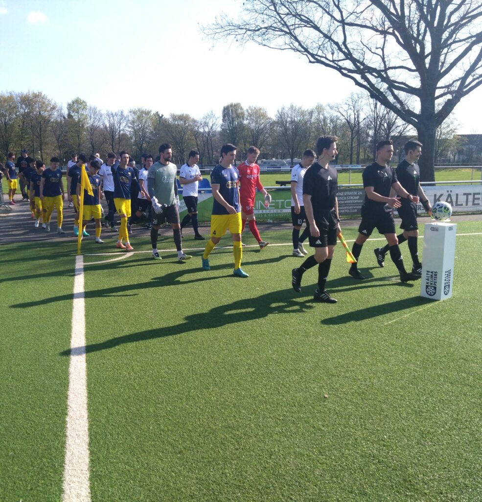 Danach sah es in der 1. Halbzeit noch nicht aus. Die Oberliga-Begegnung unter der Leitung des souverän pfeifenden Schiedsrichters Dr. Jan Peter Weßels entwickelte sich zunächst wie erwartet. Die bei strahlend blauem Himmel und frühlingshaften Temperaturen zahlreich erschienenen Zuschauer sahen zwei Teams, die durch kontrolliertes Passspiel versuchten, Sicherheit in ihre Aktionen zu bekommen, ohne aber in der Offensive ein Risiko einzugehen. Die erste nennenswerte Torchance des Spiels hatte in der fünften Minute Reo Kamiyama für den TSV Meerbusch. Es dauerte bis zur 16. Minute, bis sich BW Dingden die erste Torgelegenheit herausspielen konnte, die jedoch TSV-Torwart Franz Langhoff souverän vereitelte. Bis dahin hatte sich die Elf von Marc Roch mehr Spielanteile erarbeitet und verstärkte den offensiven Druck. In der 20. und 26. Minute konnte Harumi Goto zwei Großchancen nicht verwerten. Nicht besser machte es in der 27. Spielminute TSV-Stürmer Florian Berisha, der das 1:0 auf dem Fuß hatte. Diese eklatante Schwäche der TSV-Offensive im Torabschluss sollte sich im Verlauf des Spiels noch rächen. In der 42. Spielminute musste TSV-Trainer Marc Roch den „Mittelfeld-Strategen“ Mattia Majetic verletzt vom Platz nehmen. Für ihn kam Daniel Aserov. Diese Schwächung führte in der 44. Minute zu einer Doppelchance für BW Dingden. Aber auch bei dieser Aktion war auf Franz Langhoff im Tor des TSV verlass. Zweimal reagierte er überragend und verhinderte damit das 0:1.